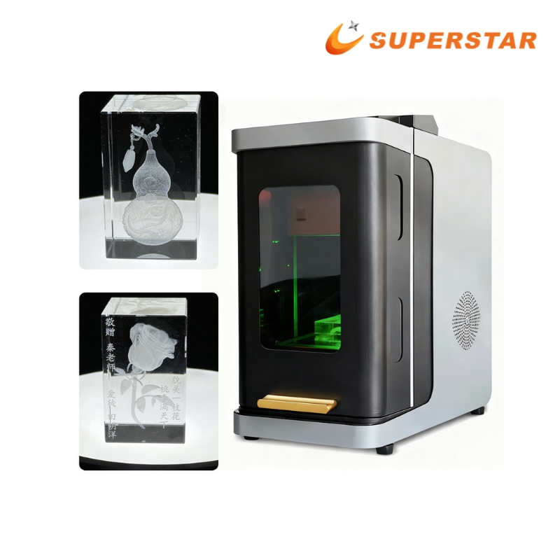 スーパー スター5Wクリスタル内部彫刻機 (メーカー製) 済南金盛興機械製造有限公司)は、カスタマイズされたギフト技術の最先端を代表しています。従来の CO2 レーザーはガラスの表面のみを焼きますが、この機械は 内部にビームの焦点を合わせます。 クリスタル ブロックの
