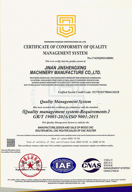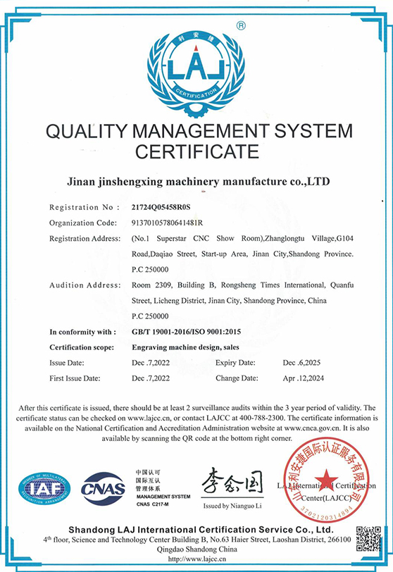 Jinan Jinshengxing Machina Fabrica Co, Ltd est fabrica CNC itineris et fibra laser machina in Jinan urbe Shandong provinciae. Cum notis Superstar in 2003 incepimus. Cum pluribus notis domesticis et transmarinis, generalem obsidionem habemus de 1 miliones dollariorum et area plantarum plus quam 86000 metrorum quadratorum.